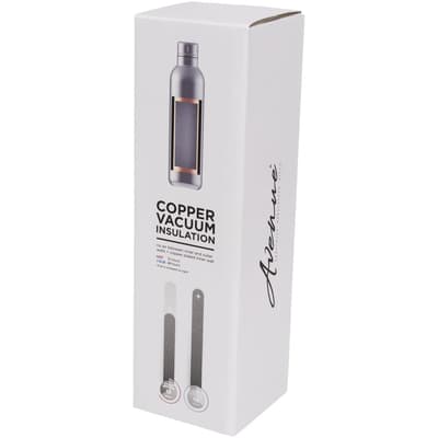 Duurzame dubbelwandige roestvrijstalen koper vacuümcisolatie, waardoor je drank 48 uur koel blijft en minstens 12 uur voor warme dranken. De constructie voorkomt ook condensatie aan de buitenzijde van de fles. On-trend, duurzame poedercoating. Roestvrijstalen schroefbare morsbestendige deksel. Inhoud 510 ml. Geleverd in een Avenue geschenkverpakking.