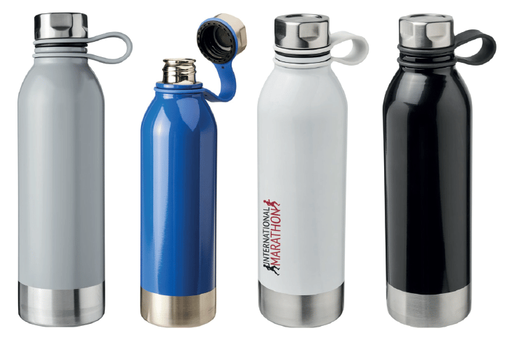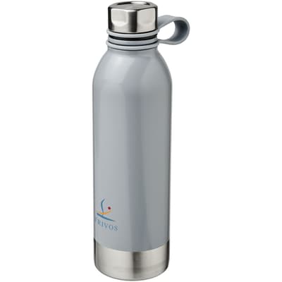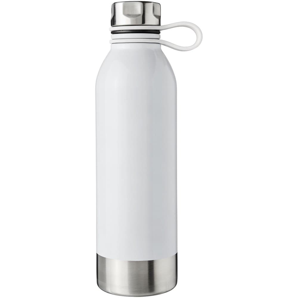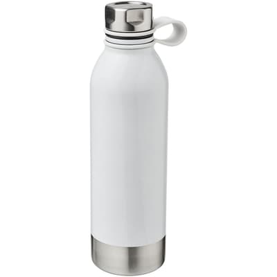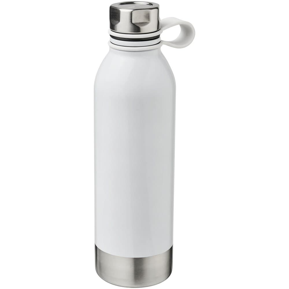 De Perth 740 ml roestvrijstalen sportfles, ideaal voor drinkflessen bedrukken, is niet alleen een lust voor het oog op elk bureau, maar ook perfect voor een wandeling in het bos. Dankzij de schroefdop en het roestvrijstalen deksel met een comfortabele siliconen handgreeplus is de fles gemakkelijk mee te nemen, terwijl de dop nooit kwijtraakt. De stijlvolle kleurencombinatie van wit en zilver maakt deze fles extra aantrekkelijk.