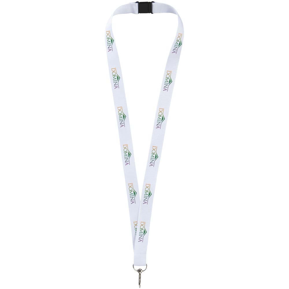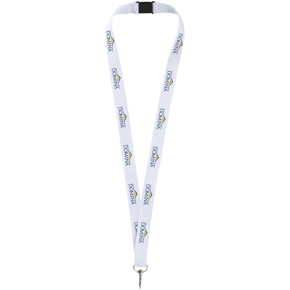 Lanyard voor badge, ID-kaart of sleutels, voorzien van een veiligheidssluiting tegen verstikkingsgevaar. Perfect voor keycords bedrukken met een logo of tekst. Instelkosten voor een tweede locatie vervallen als beide zijden op dezelfde manier worden gedecoreerd, decoratiekosten blijven van toepassing.