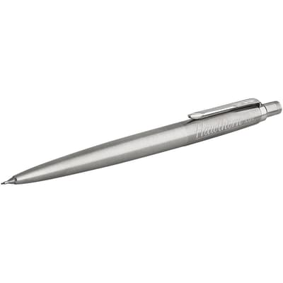 Hét Parker icoon. Jotter, de bewuste keuze van actieve schrijvers die hun metalen pen geen moment kunnen missen. Geleverd met één potloodvulling (0,5 mm nib) in Parker geschenkverpakking. Voorzien van gum onder drukknop. Exclusief ontwerp.