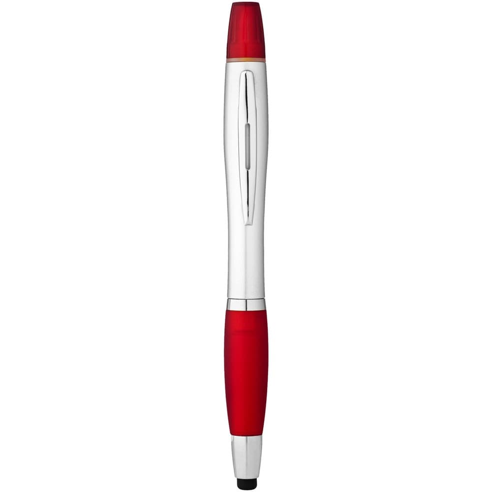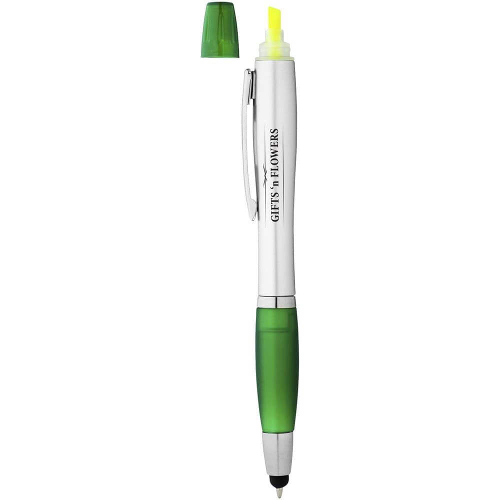 Stylus balpen met draaimechanisme, markeerstift en soft touch greep. Zwartschrijvend.