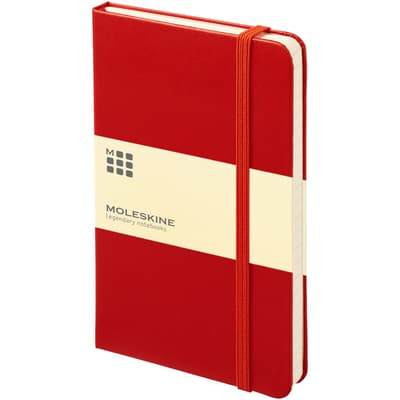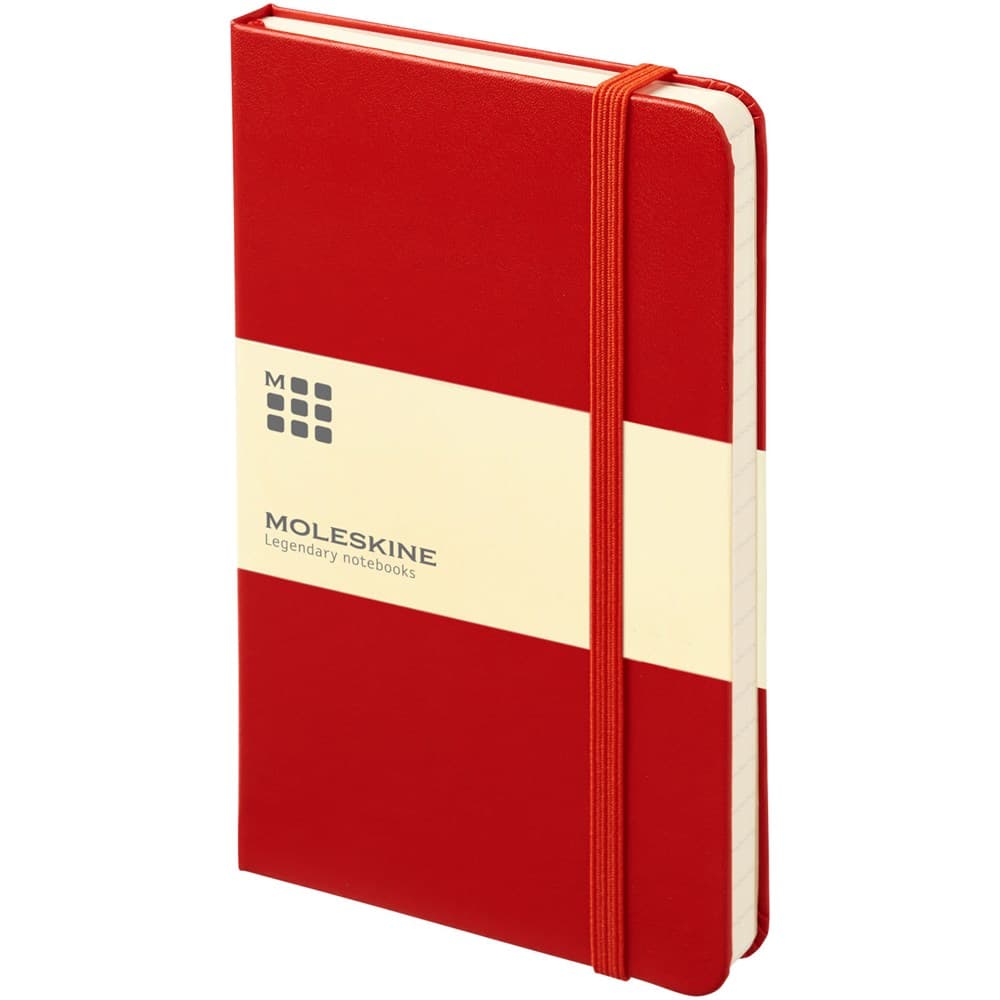 Moleskine Classic hardcover notitieboek in pocketformaat (9 x 14 cm). Verkrijgbaar in diverse stijlvolle, levendige kleuren. Het notitieboek heeft een omslag van gebonden karton met afgeronde hoeken, zuurvrij papier, een bladwijzer en een elastische sluiting. De eerste pagina biedt ruimte voor persoonsgegevens en het noteren van een beloning die de eerlijke vinder in geval van verlies ontvangt. Aan de achteromslag bevindt zich aan uitbreidbaar binnenvak met daarin de geschiedenis van Moleskine. Dit vak kan worden gebruikt voor losse papieren en notities. Bevat 192 ivoorkleurige gelinieerde pagina's.