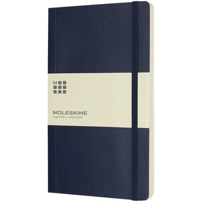 Het Moleskine Classic large (13 x 21 cm) softcover notitieboek is verkrijgbaar in diverse stijlvolle, levendige kleuren. Het notitieboek heeft een kartonnen zachte omslag met afgeronde hoeken, zuurvrij papier, een bladwijzer en een elastische sluiting. De eerste pagina biedt ruimte voor persoonsgegevens en het noteren van een beloning die de eerlijke vinder in geval van verlies ontvangt. Aan de achteromslag bevindt zich aan uitbreidbaar binnenvak met daarin de geschiedenis van Moleskine. Dit vak kan worden gebruikt voor losse papieren en notities. Bevat 192 ivoorkleurige gelinieerde pagina's.