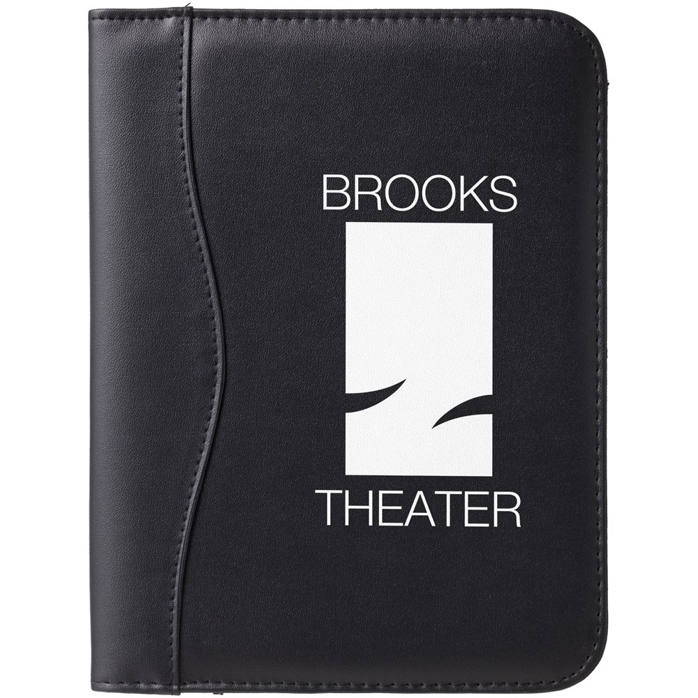 Portfolio A5 formaat met pennenlus, documentvakken en notitieblok met 20 pagina's gelinieerd papier. Pen en accessoires niet inbegrepen.