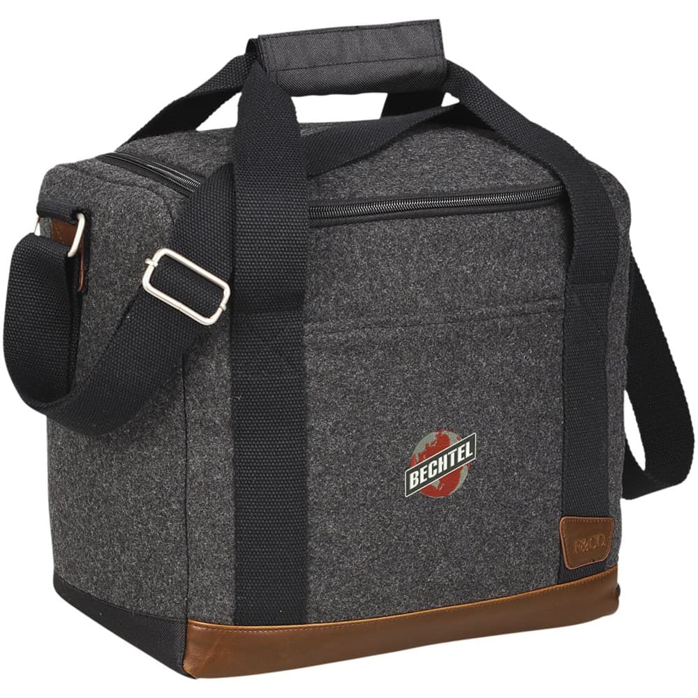 Onderdeel van de Field & Co.® Campster serie. De inspiratie hiervoor komt van de retro kampeer en padvinderslook, gecombineerd met moderne behoeften. Deze stijlvolle koeltas combineert wol/polyester en vinyl accenten met de functie van een geïsoleerde koeler met flesverdeler. Inzetstukken komen samen en creëren afzonderlijke compartimenten voor twaalf flessen van 350 ml. Wanneer ze niet in gebruik zijn kunnen ze worden opgevouwen en opgeslagen op de bodem van de tas. Bevat een Field & CO. flesopener met merklogo.