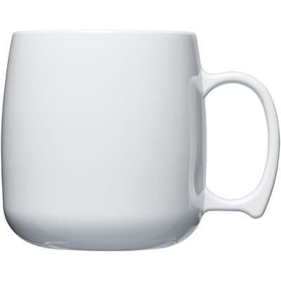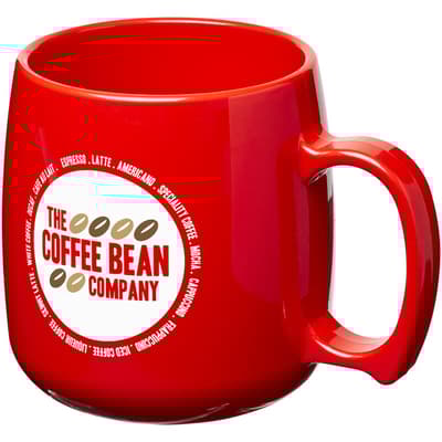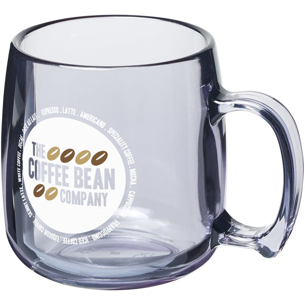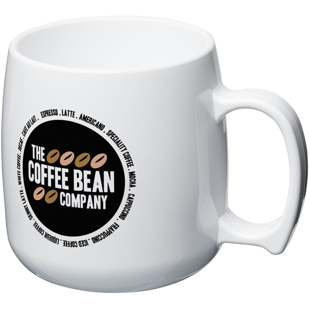 Duurzame, enkelwandige kunststof mok. Volume 300 ml. Gemaakt in het Verenigd Koninkrijk. Perfect voor koffiekopjes bedrukken.