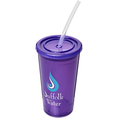 Dubbelwandige doorzichtige geïsoleerde beker. Geleverd met een PE rietje. Volume 350 ml. Gemaakt in het Verenigd Koninkrijk. Voldoet aan EN12875-1 en is vaatwasmachinebestendig.