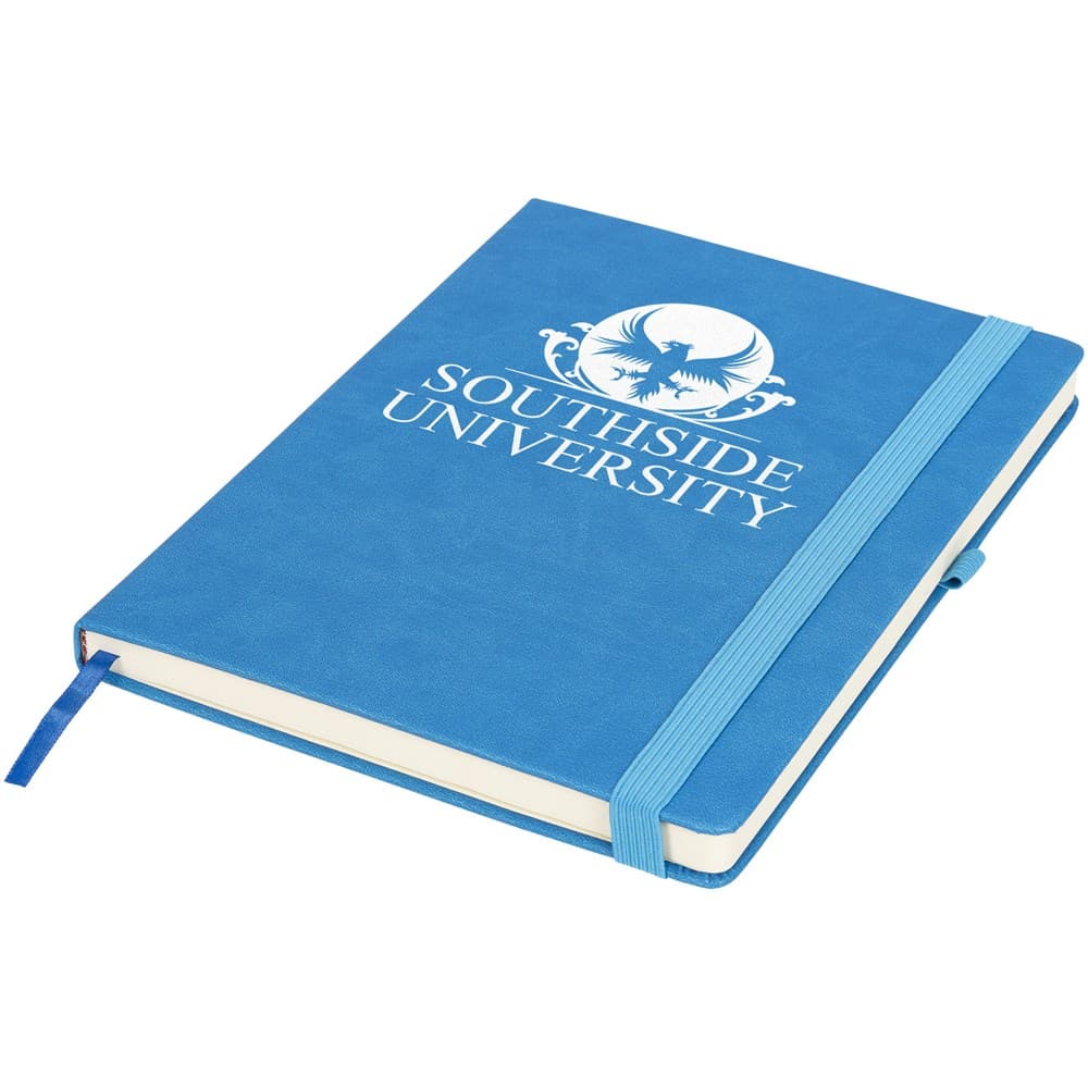 Het Rivista-notitieboek heeft een stijlvol modern design met een hoogwaardige, tastbare omslag, ideaal voor het plaatsen van je bedrijfslogo en -gegevens. Verkrijgbaar in een variatie aan tijdloze kleuren. Inclusief een elastische sluiting, penlus, bladwijzer en opbergvakje aan de binnenkant van de achterste omslag. Bevat 128 bladen (70g/m2) crèmekleurig gelinieerd papier.