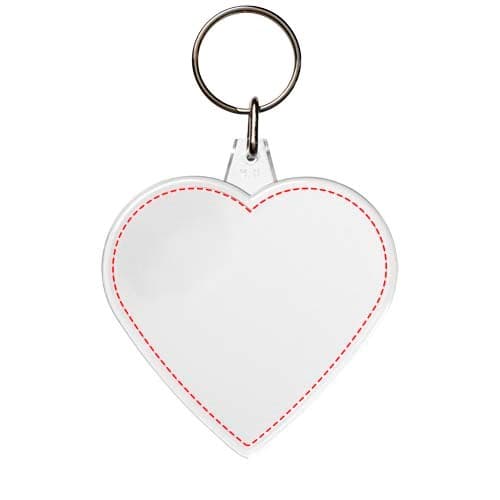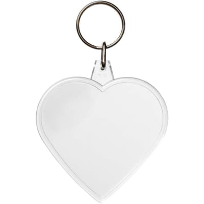 Wil je sleutelhangers bedrukken? Kies dan voor deze doorzichtige hartvormige sleutelhanger met metalen sleutelring. De metalen lusring biedt een vlak profiel dat ideaal is voor de post. Afmetingen van het te bedrukken inzetstuk: 5,8 cm x 5,0 cm.