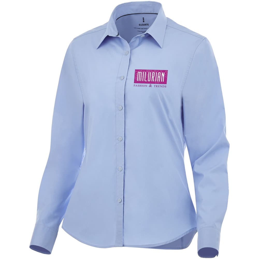 Het Hamell dames stretch overhemd met lange mouwen - een ideale combinatie van stijl en comfort. Dit geweven overhemd heeft een lichtgewicht popeline stof van 97% katoen en 3% elastaan. Popeline stof staat bekend om zijn strakke weving, die zorgt voor uitzonderlijke duurzaamheid terwijl het een zachte en gladde textuur tegen de huid behoudt. Dit betekent dat het Hamell overhemd niet alleen comfortabel is om te dragen, maar ook bestand is tegen alledaagse slijtage, zodat je er lang gebruik van kunt maken. De toegevoegde stretch zorgt voor ultieme bewegingsvrijheid, waardoor je de hele dag door verzekerd bent van optimaal comfort. De verborgen button-down kraag voegt raffinement toe met behoud van een nette look. Dit overhemd is ontworpen met een getailleerde vorm voor een vrouwelijke look. Ideaal voor overhemden bedrukken.