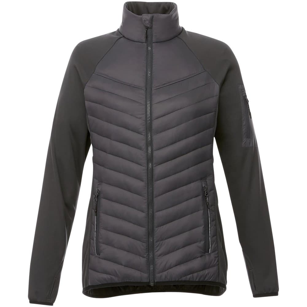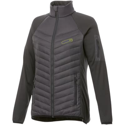 Het Banff dames hybride geïsoleerde jas - een perfecte samensmelting van stijl en prestaties. De stormflap aan de binnenkant zorgt ervoor dat de wind niet door het jack heen komt, en de afgezakte zoom aan de achterkant voegt een extra bedekking toe voor extra warmte. De elastische bies in een contrasterende kleur voegt een stijlvol accent toe en zorgt voor een goede pasvorm. De doffe cire 380T geweven stof van het jack heeft een waterafstotende en donsbestendige afwerking, gemaakt van nylon (38 g/m2). De contraststof is een interlock breisel van polyester en elastaan (245 g/m2) en voegt flexibiliteit en comfort toe. De imitatie donsisolatie van polyester zorgt voor lichtgewicht warmte, perfect voor frisse dagen. Dit jack is ontworpen met een getailleerde vorm voor een vrouwelijke look. Ideaal voor jassen bedrukken.