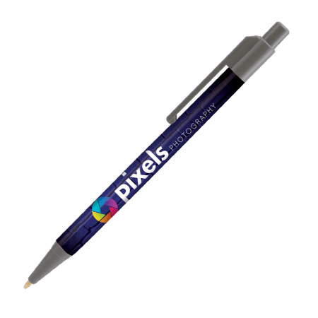 SAL kunststof balpen transparant Peekay met zwarte drukker, in diverse kleuren leverbaar, met blauw