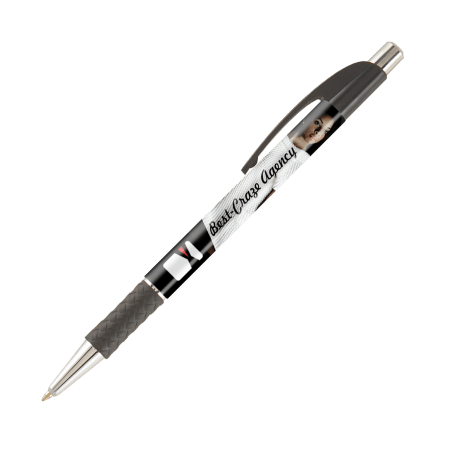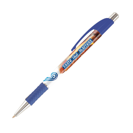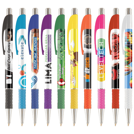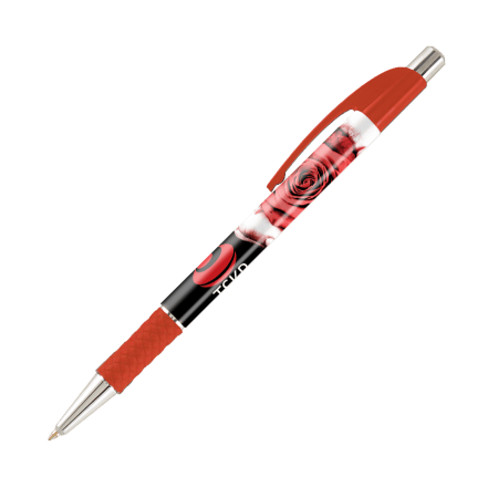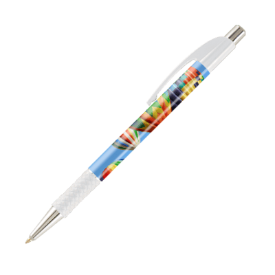 DIA balpen, slanke, full colour bedrukte balpen met gekleurde grip en gebogen clip
