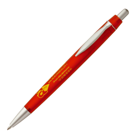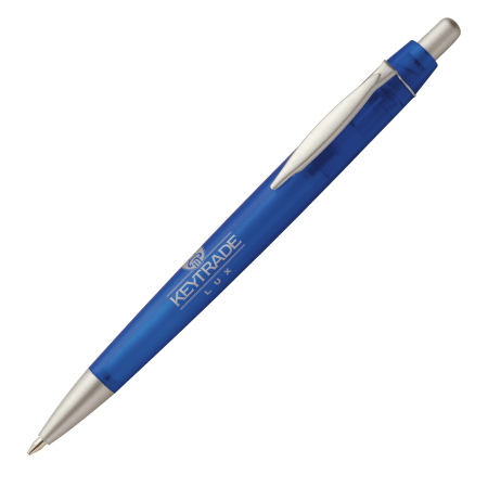 MELITA kunststof balpen frosty Peekay. Populaire frosty balpen met zilverkleurige drukker, puntstuk en metalen clip. Blauwschrijvende plastic langschrijfvulling