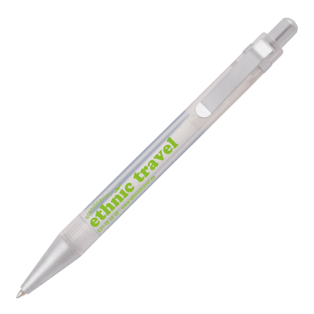 ARTICA balpen metaal frosty Peekay. Stijlvolle balpen met kunststof houder in actuele frosty kleuren en mat-verchroomde metalen clip, puntstuk en drukker. Voorzien van blauwschrijvende kunststof langschrijfvulling