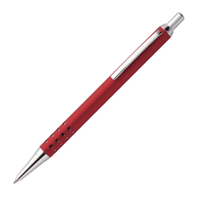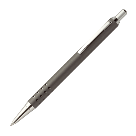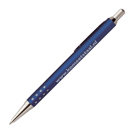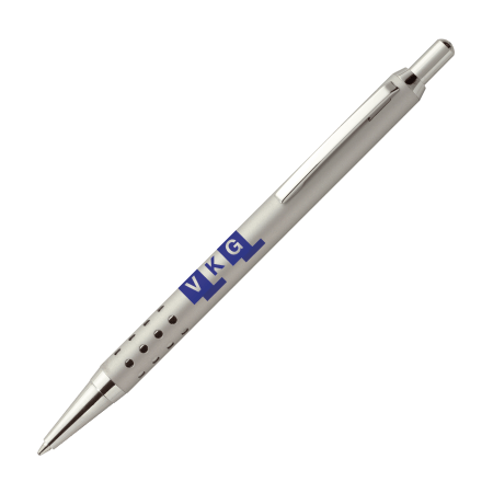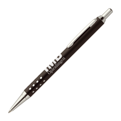 LIPARI alu balpen Peekay. Karaktervolle aluminium design balpen met glansverschroomde metalen clip, drukker en puntstuk. Houder voorzien van opvallend stansmotief met zilverkleurige achtergrond. Voorzien van blauwschrijvende metalen langschrijfvulling voor vele meters schrijfplezier