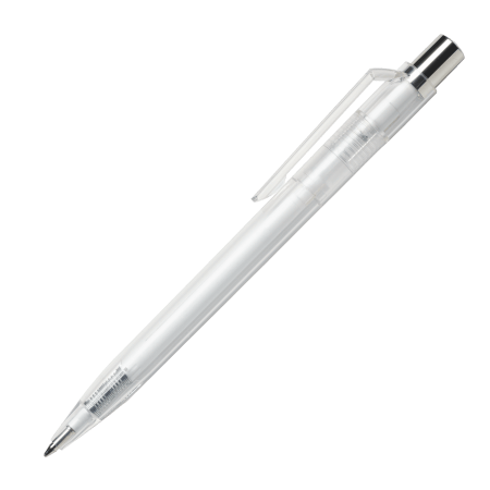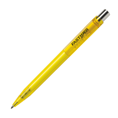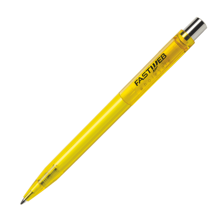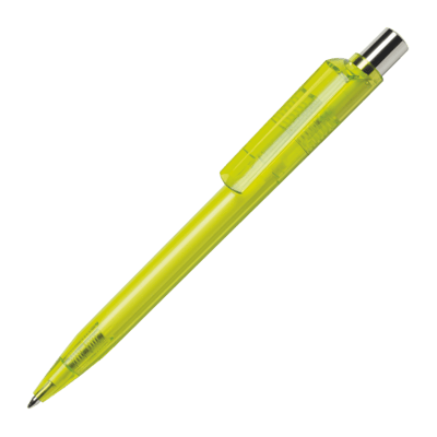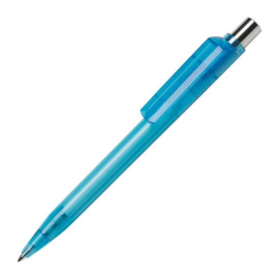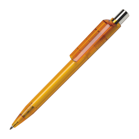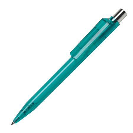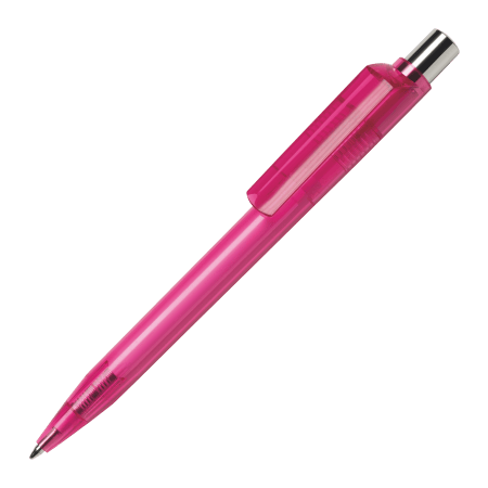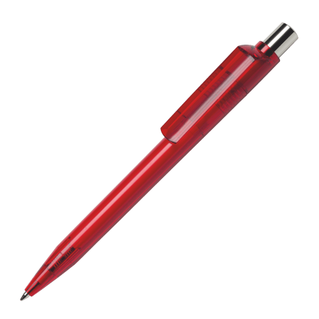 Maxema balpen DOT D1 30 CR, glanzend gekleurde transparante houder en clip, glanzend gekleurd element in de verchroomde drukker. Voorzien van Jumbo vulling met blauwe Dokumental inkt voor tot 2.500 meter schrijfplezier. Houders, clips en element in drukker leverbaar in maar liefst 14 kleuren die per onderdeel vanaf 2.000 stuks onderling te combineren zijn. Perfect voor pennen bedrukken.