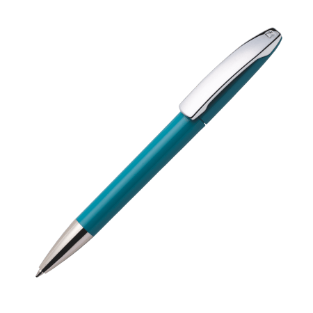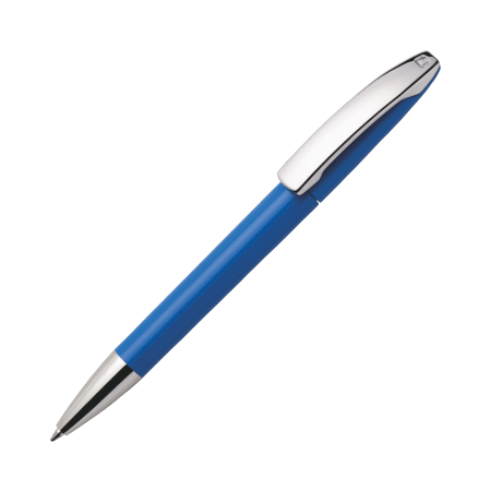 Maxema balpen VIEW V1 C CR, draaibalpen met glanzend gekleurde houder, verchroomde metalen clip, verchroomd puntstuk. Voorzien van Jumbo vulling met blauwe Dokumental inkt voor tot 2.500 meter schrijfplezier. Boven- en onderstuk zijn leverbaar in maar liefst 19 kleuren en zijn vanaf 2.000 stuks onderling qua kleur te combineren.