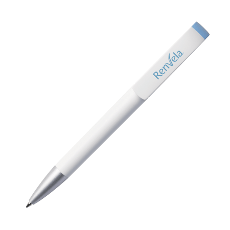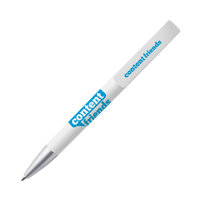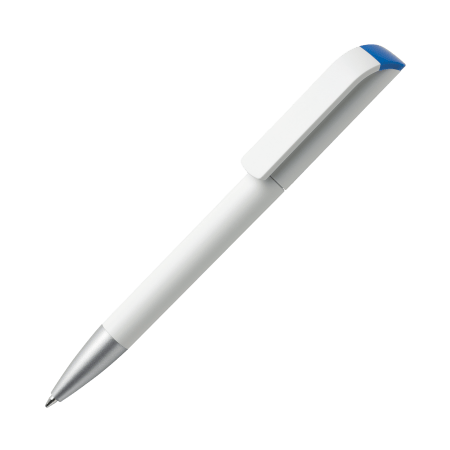 Maxema balpen TAG TA1 MATT AL B, draaibalpen met mat witte houder en clip, aluminiumkleurig puntstuk en glanzend gekleurd element boven de clip. Voorzien van Jumbo vulling met blauwe Dokumental inkt voor tot 2.500 meter schrijfplezier. Element is leverbaar in maar liefst 17 kleuren.