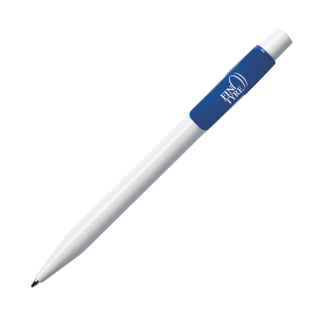Maxema balpen PIXEL PX40 B met glanzend witte houder en drukker, glanzende gekleurde clip. Voorzien van X-20 vulling met blauwe Dokumental inkt voor tot 2.000 meter schrijfplezier. Leverbaar in maar liefst 9 kleuren.