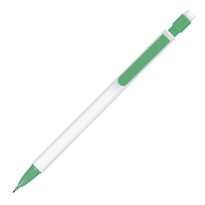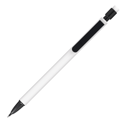 GAZ vulpotlood Peekay. Kunststof vulpotlood met kunststof clip en wit gummetje bovenop de drukker. Voorzien van 2 HB-vullingen 0,7 mm. Laat je vulpotloden bedrukken door De PennenBoer.