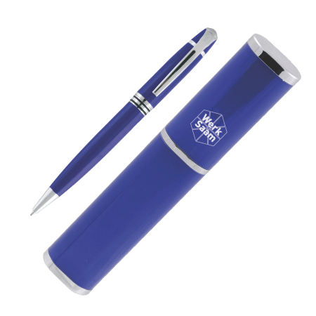ST. MAARTEN stijlvolle metalen box met 1 blauwschrijvende pen Peekay, in meerdere kleuren te bestellen