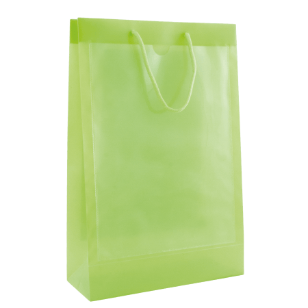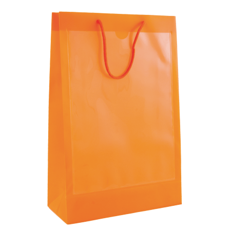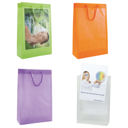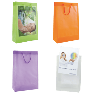 Transparante polypropylene tas recyclebaar 260 x 400 x 100 mm, met koord 5 x 150 mm. en 2 vensters met A4 inlay