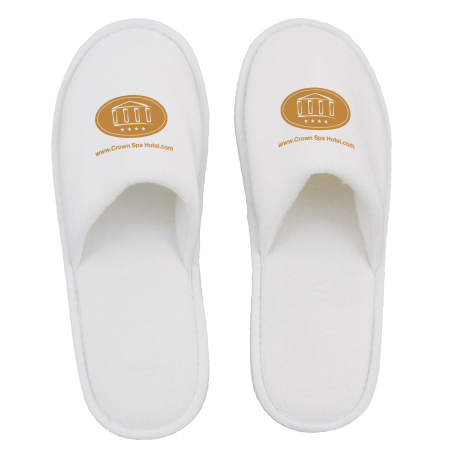 Paar slippers bedrukken, dichte teen,één maat, velours bovenkant en antislip zool