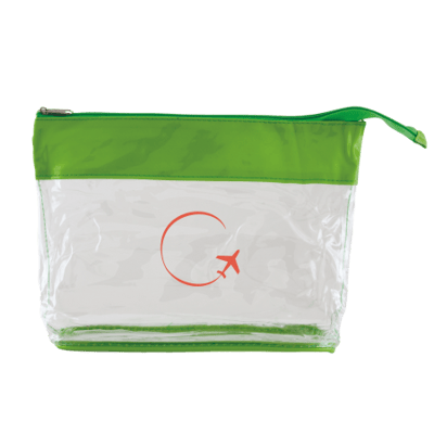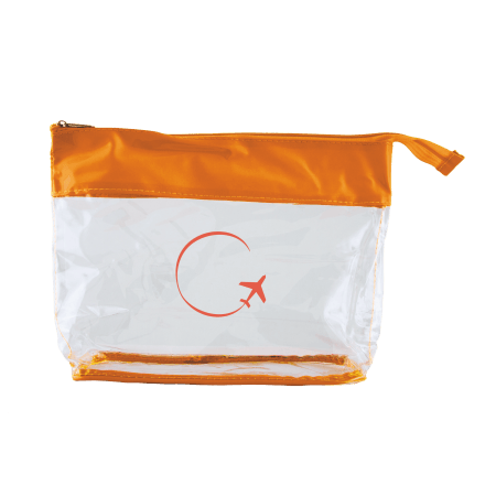 Wil je een toilettas bedrukken die opvalt? Deze toilettas heeft een transparant ontwerp met een gekleurde bies en is gemaakt van stevig PVC – een stijlvolle keuze voor promotionele doeleinden.