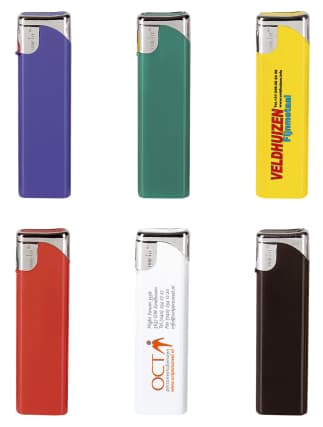 Zorr Slider Piezo elektronische aansteker bedrukken hard colour, navulbaar, 24x80x8 mm, met gas stop, shock proof bodem, kinderbeveiliging en ISO gecertificieerd