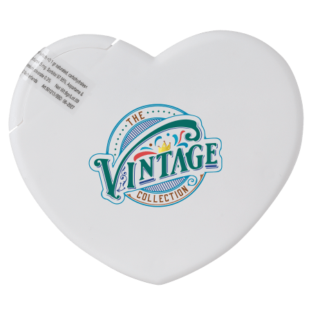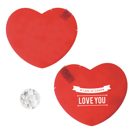 Hart mintdispenser 72x60 mm met ca. 8 gr. suikervrije mintjes en ingrediënten label, TAMPONDRUK, Beschikbaar in rood.