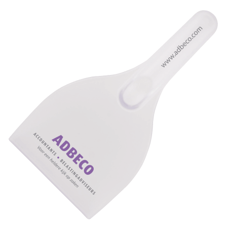 IJskrabber breed 224 x 108 mm, met een extra brede voorkant en duurzame kunststofuitvoering. Perfect voor ijskrabbers bedrukken met jouw logo of tekst.