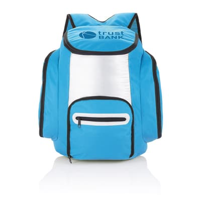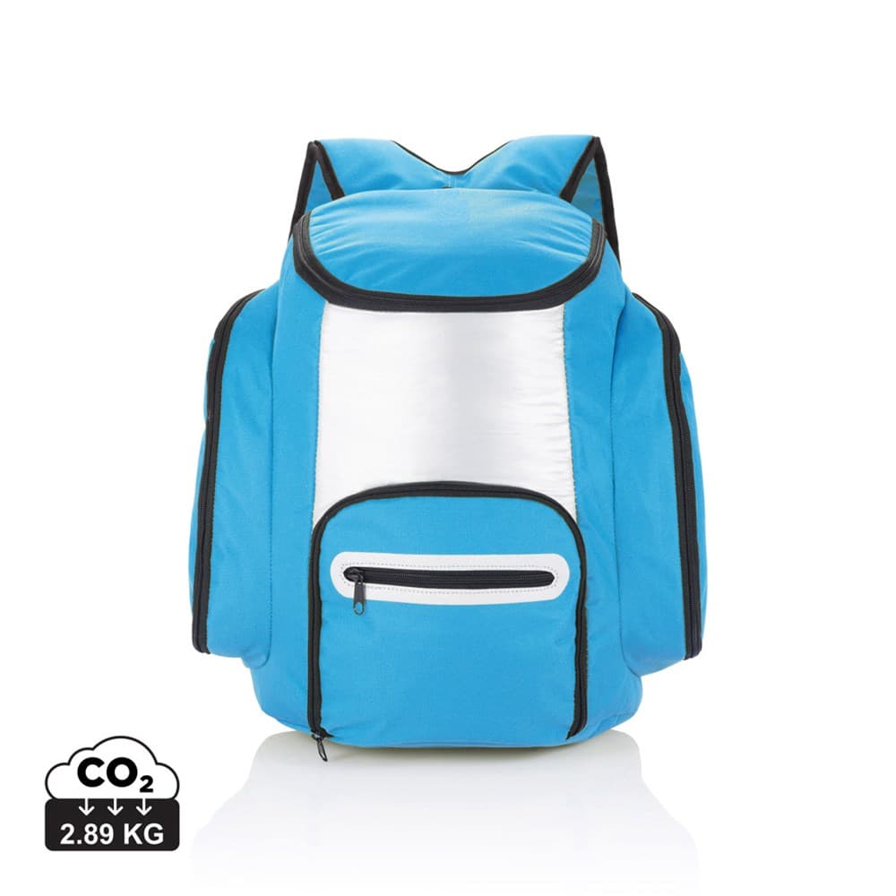 600D koelrugtas met zilverkleurig interieur voor langere koeling van uw dranken en etenswaren. Extra voorvak met kleuraccent rondom de ritssluiting om uw overige spullen in op te bergen.