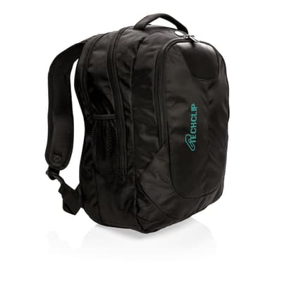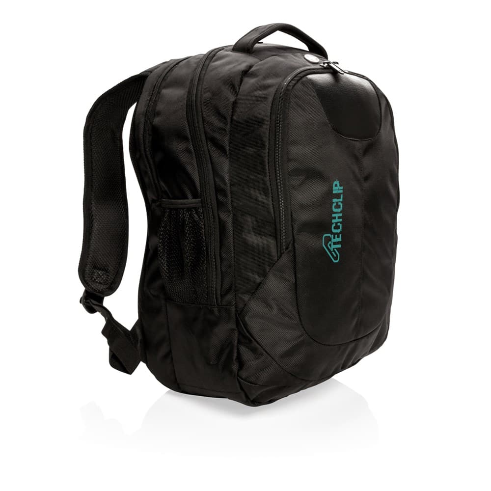1680D polyester rugtas met uitgekiende balans tussen comfort en bescherming. De rugtas heeft gevoerde vakken voor laptop en iPad, lussen voor pennen en mesh vakken voor organisers. Aan de schouderband bevindt zich een audio stekker voor hoofdtelefoon en een opbergvak voor een zonnebril. Er is zelfs een hoes om alle inhoud tegen de regen te beschermen. Geregistreerd ontwerp®
