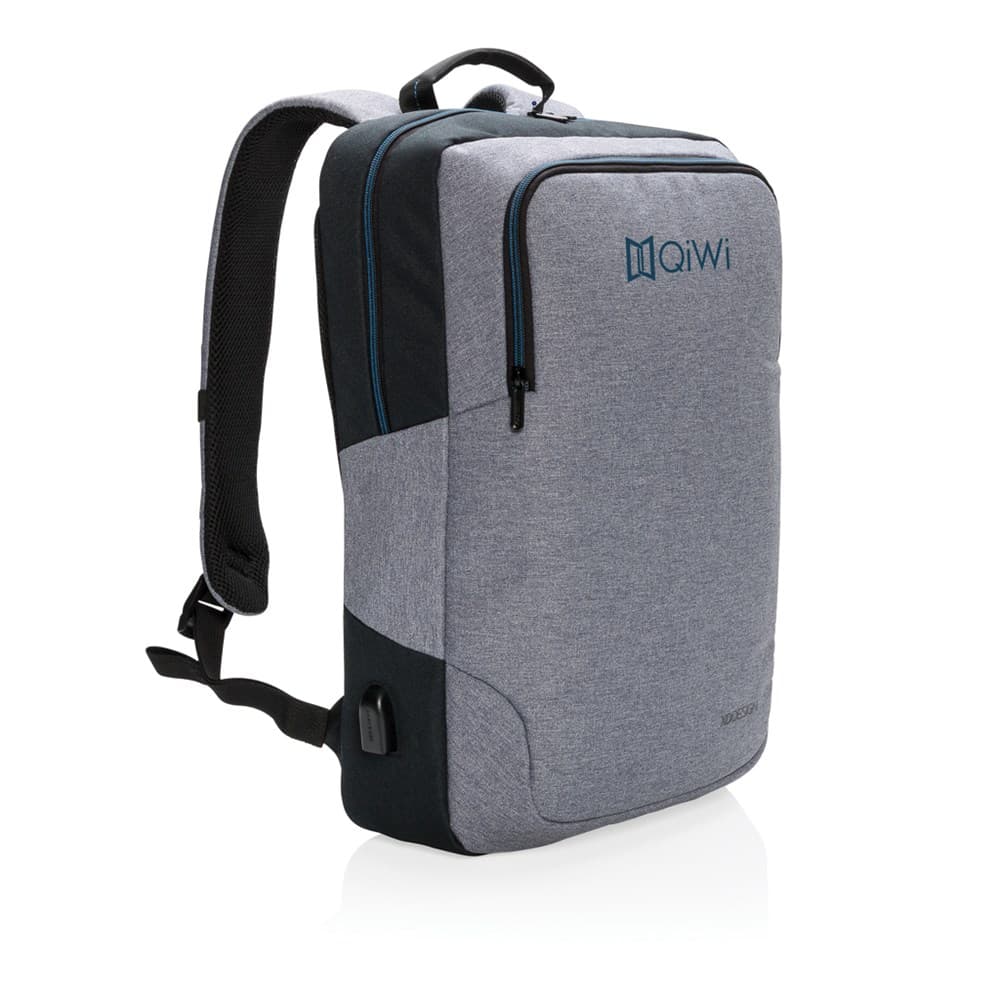 Wil je laptoptassen bedrukken met een innovatief en praktisch ontwerp? Deze unieke 15-inch laptoprugzak heeft een groot hoofdvak en voorvak, een handsfree zuignapsysteem op de schouderbanden om je telefoon te bevestigen, en een geïntegreerde USB-laadpoort om je powerbank aan te sluiten en onderweg je telefoon of tablet op te laden. Geregistreerd ontwerp en PVC vrij.