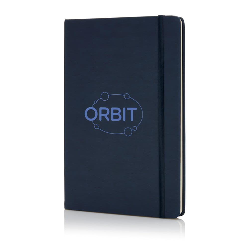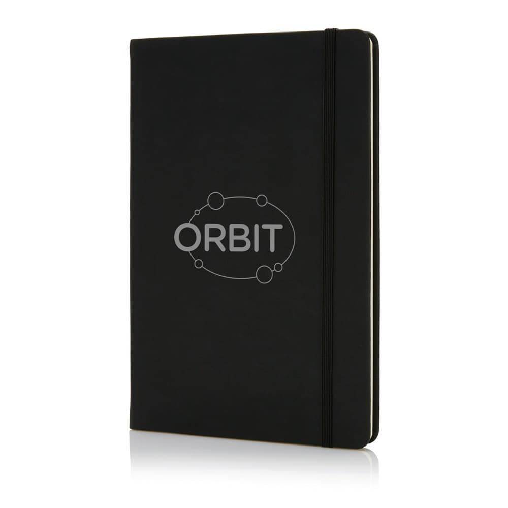 PU notitieboek met 160 pagina’s. Kaft geschikt voor logo embossing.