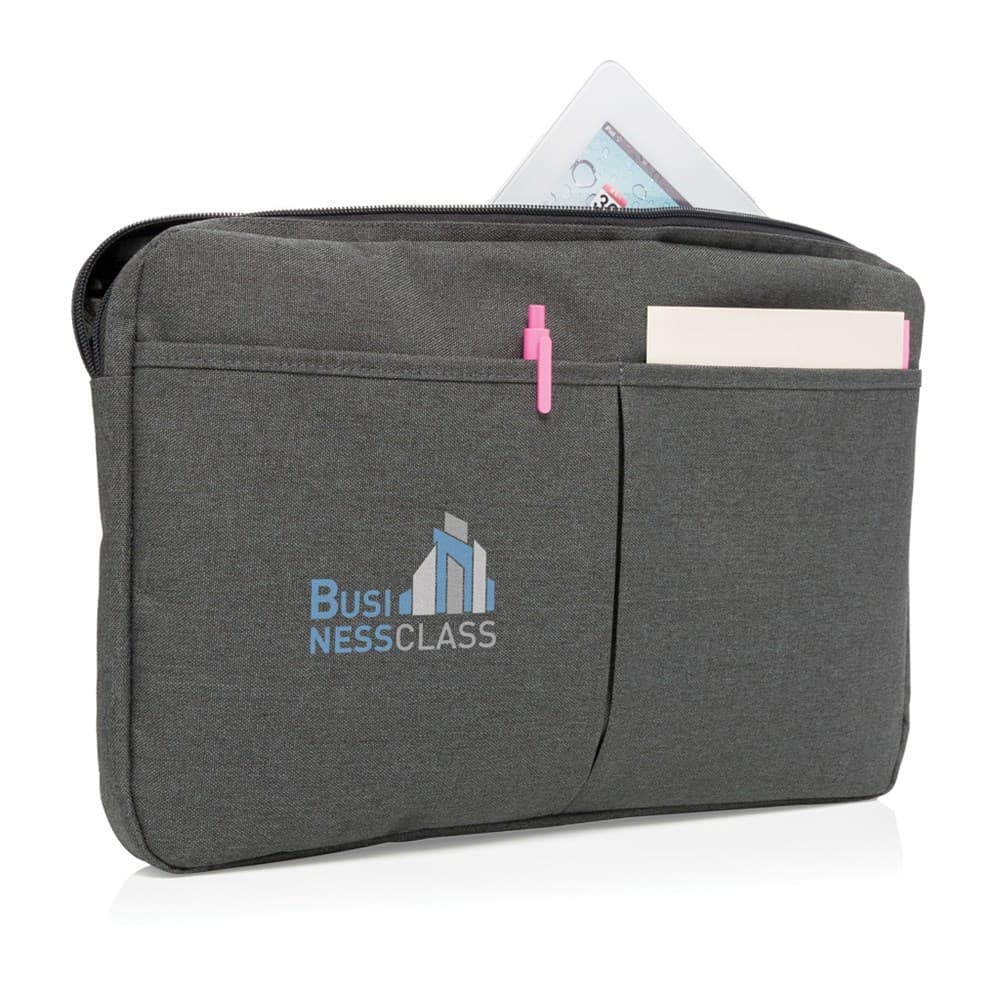 Polyester hoes die behalve voor uw laptop ook ruimte voor toebehoren als kabels, adapters en sticks herbergt. PVC vrij.