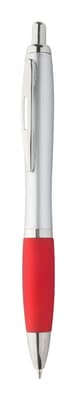 Metalen balpen met rubber grip. Blauw schrijvend.