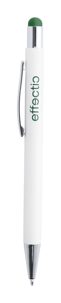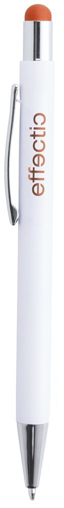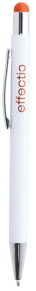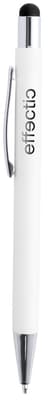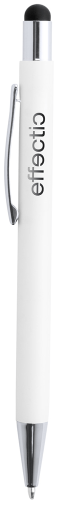 Aluminium touchscreen en balpen met speciale coating voor gekleurde gravures. Blauw schrijvend.