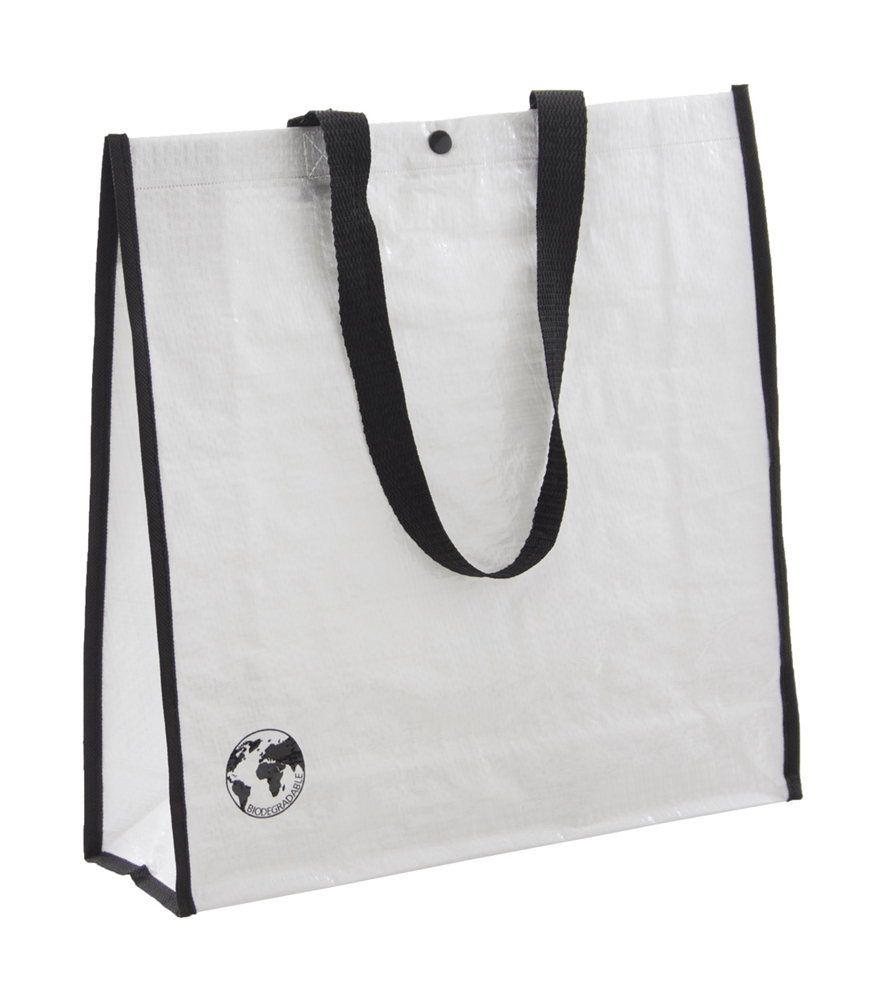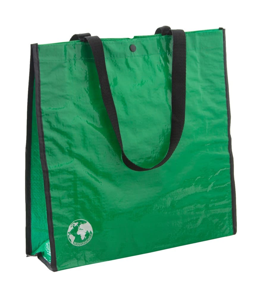 Biologisch afbreekbare boodschappentas met drukknoopsluiting. PP geweven 120 g/m².