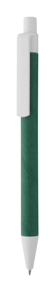 Balpen gemaakt van recycled karton en plastic. Blauw schrijvend.