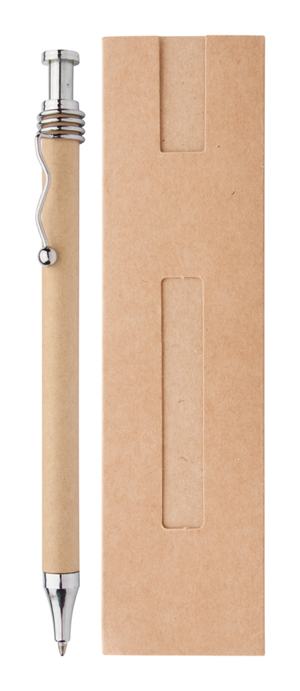 Balpen met hoesje. Gemaakt van gerecycled papier. Blauw schrijvend.
