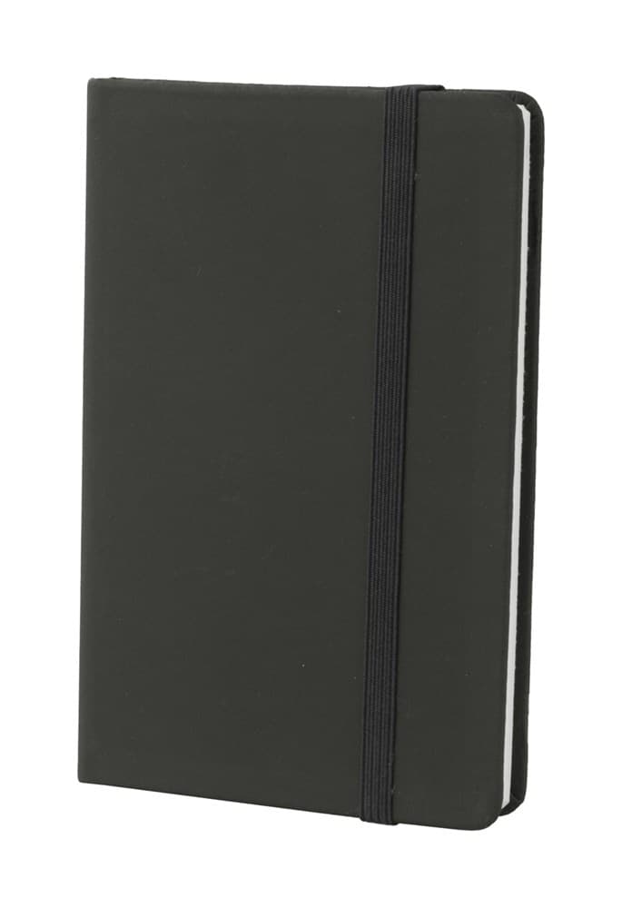 PU bekleed notitieboek met 100 blanco pagina's zonder lijntjes. Met pagina marker en rubberen touw.
