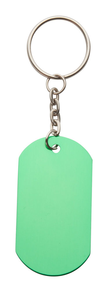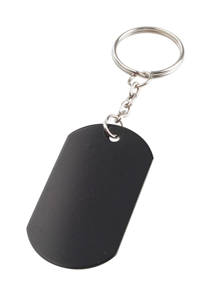 Aluminium sleutelhanger met metalen ring.