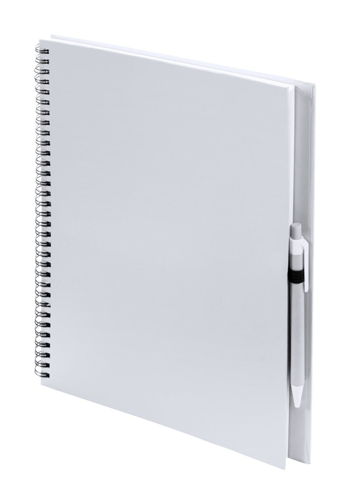 Spiraal notitieboek met 80 blanco pagina's en bijpassende gerecycelde (blauw schrijvende) balpen, A4.