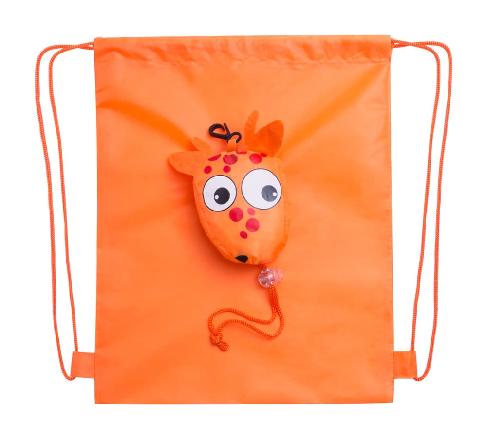 Opvouwbare trekkoord tas voor kinderen. In de vorm van een dier, met plastic karabijnhaak. 190T Polyester.