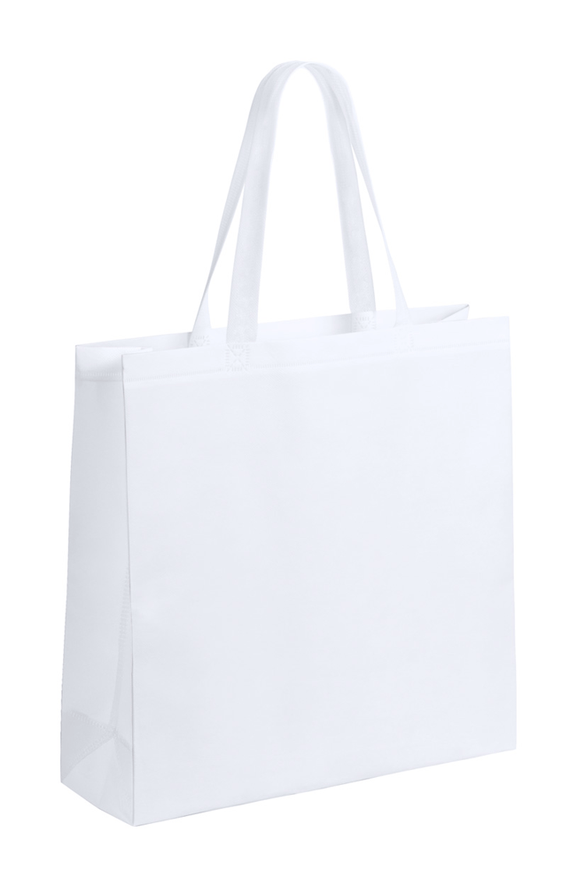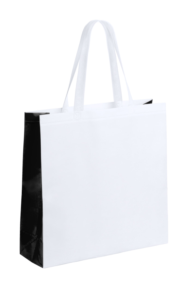 Witte gelamineerde non-woven boodschappentas met gekleurde zijkanten.