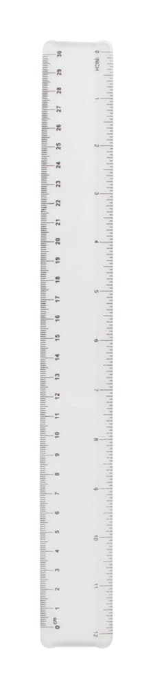 Transparant plastic lineaal met centimeters en inches, 30 cm.