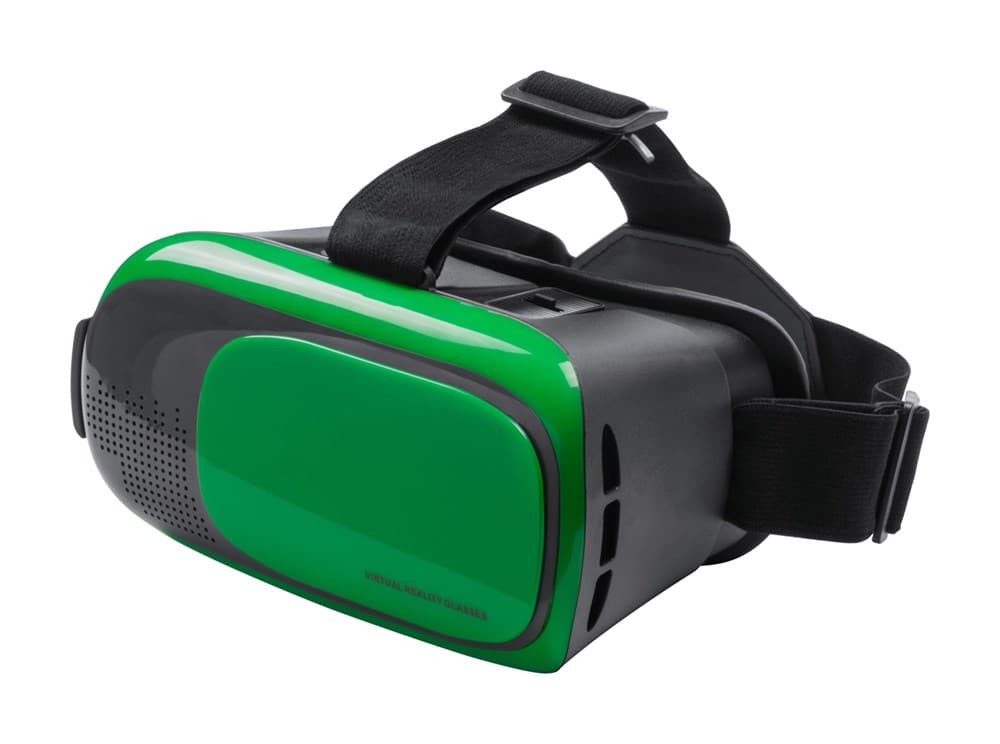 Plastic virtual reality headset met verstelbare lenzen, elastische banden en universele telefoonhouder. Ondersteund smartphones met 4,5-6,5 inch scherm.