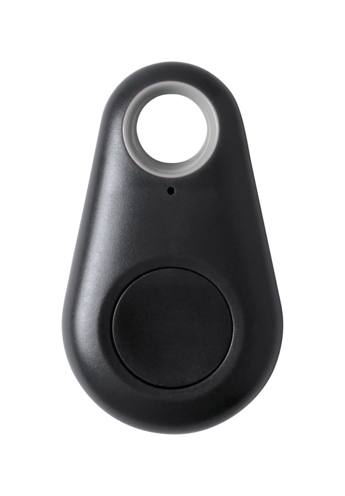 Bluetooth key finder met ingebouwde camerabediening, in plastic behuizing. Incl. knoopcelbatterij. Werkt met een gratis iOS/Android app.